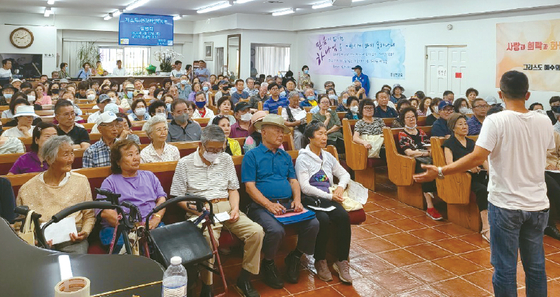 Attendees listen to K-Town Action President Daejoong Yoon during a low-income senior apartment application information session at the Abundant Mission Church on July 22. [Courtesy of K-Town Action]
