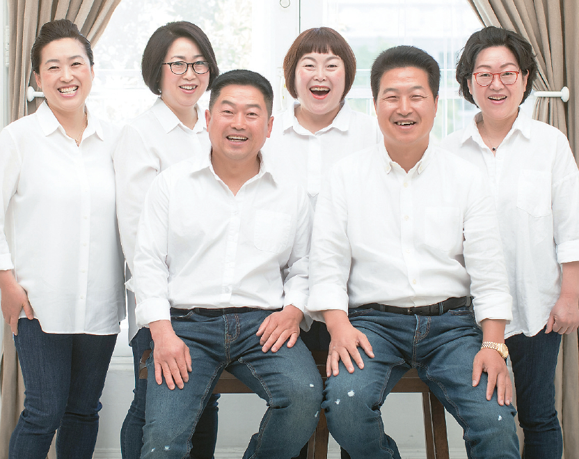 Front row, counterclockwise from left: Jinsol Gukbap Moon Kwon Ju, Brothers BBQ Bu Gweon Ju, eldest sister Keum Hwa Ju, second sister Keum Yeon Ju, Jinsol Gukbap Keum Suk Ju, and Sang Rok Soo Catering Keum Hee Ju. [Sangjin Kim, The Korea Daily]