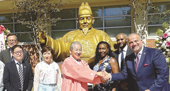 A statue of King Sejong the Great was unveiled at Los Angeles City College (LACC) on October 5, ahead of Hangul Day on October 9.