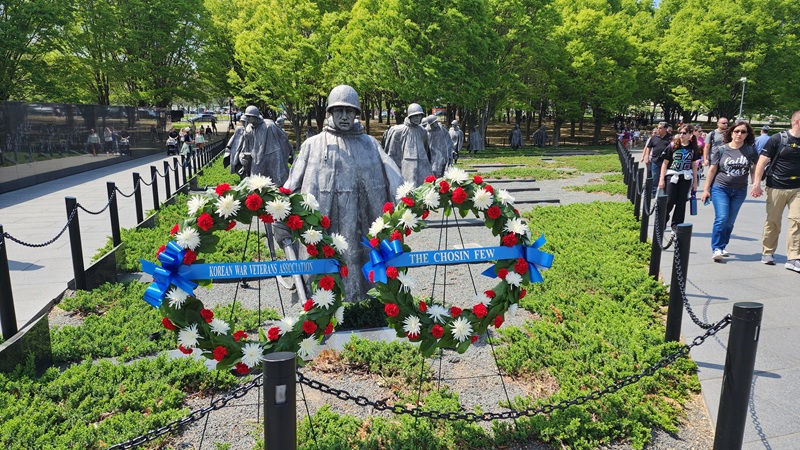 ![A wreath laid by members of the Korean War Veterans Association (KWVA) is seen at the Korean War Veterans Memorial in Washington, D.C., on April 18. [Kang Tae-hwa]](https://spcdn.shortpixel.ai/spio/ret_img,q_cdnize,to_auto,s_webp:avif/en.koreadaily.com/wp-content/uploads/2025/04/0423-veteran-3.jpg)