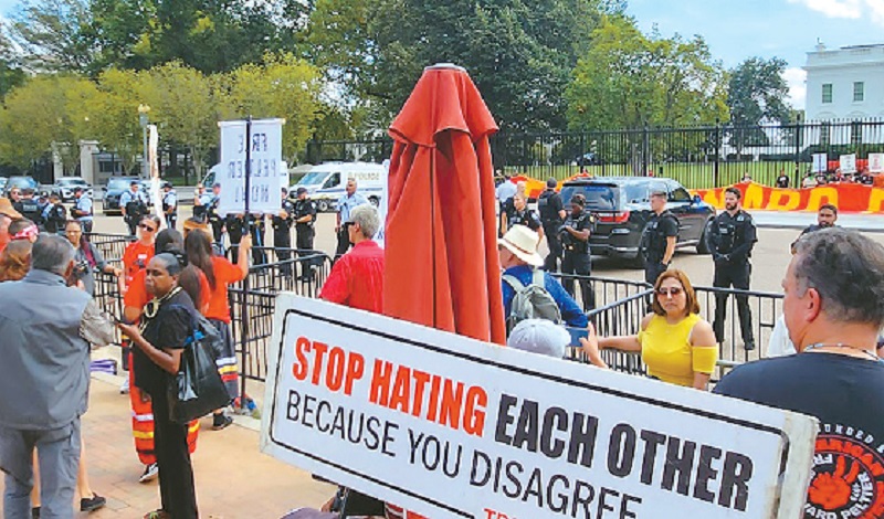 This is the scene just across the street from the Oval Office, where the U.S. President conducts his work in the White House. It’s a day after the 22nd anniversary of the September 11 attacks, an event that has become synonymous with hatred and violence.