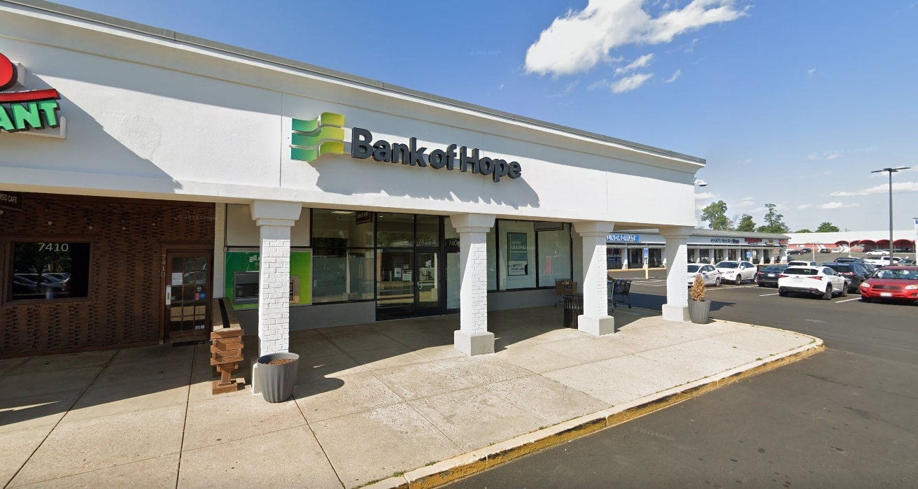 Bank of Hope is closing two branches in Virginia. Bank of Hope’s Annandale, Virginia branch [Image captured from Google Maps]