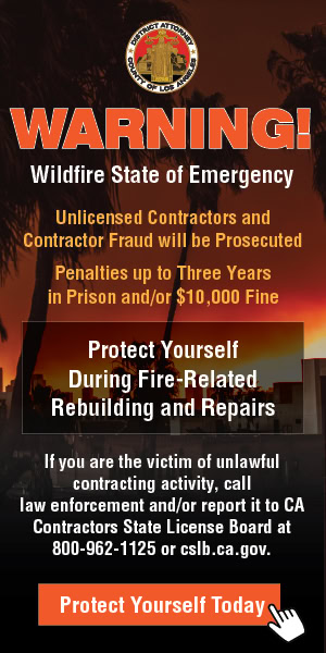 The Los Angeles County District Attorney’s Office urges residents affected by the 2025 wildfires to be careful when hiring a contractor to work on home repairs or rebuilding.