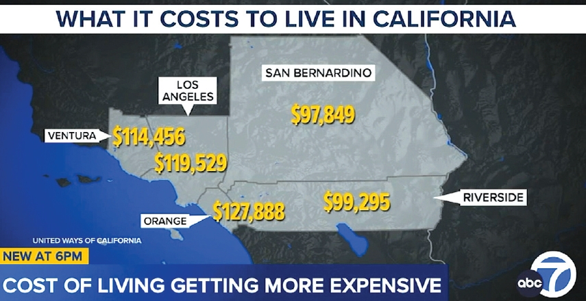 A map highlights California’s living cost estimates by county. [Captured from ABC]