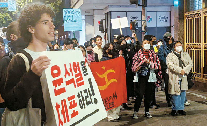 In Southern California, progressive groups have been staging protests in front of the Korean Consulate in Los Angeles since December 3, the day martial law was declared and subsequently lifted.