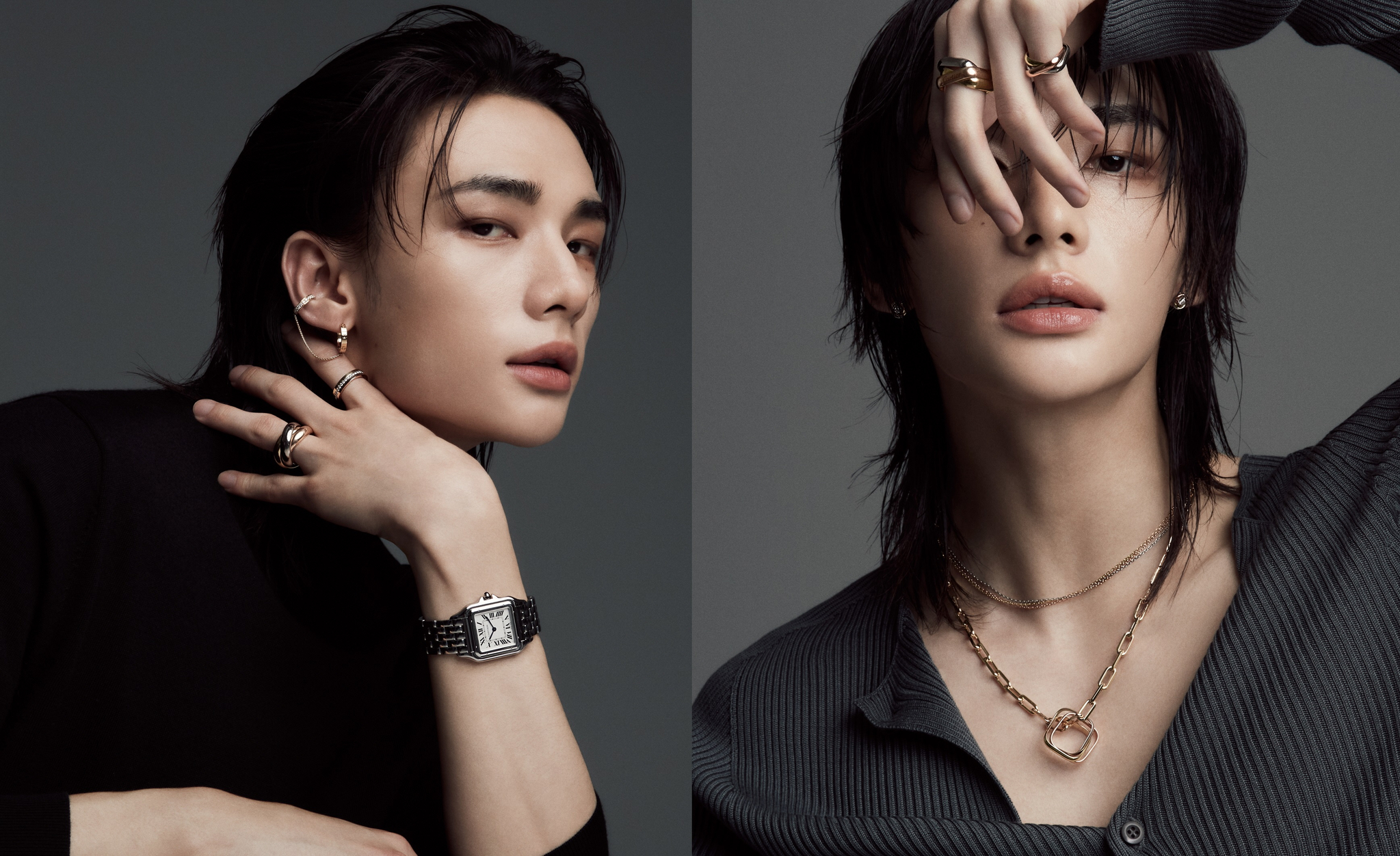 “Leading artist Hyunjin, famed for his charming performances and sophisticated style, will embody the spirit of perpetual grace and creativity of Cartier,” the brand said.