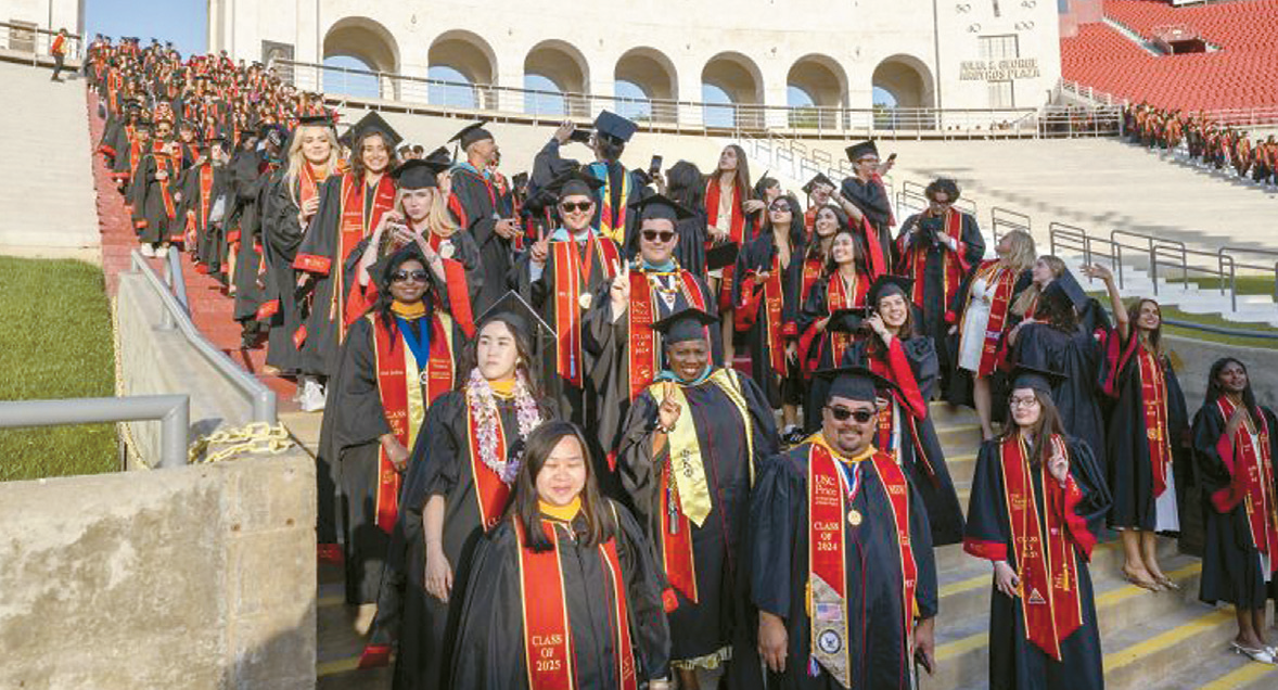 USC graduation ceremony 2025 at LA Memorial Coliseum with graduates in caps and gowns related to college majors income gap