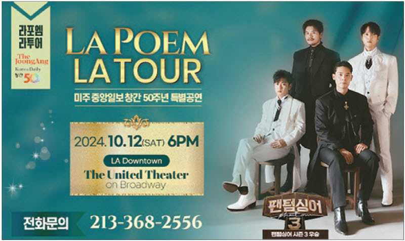To celebrate the 50th anniversary of the Korea Daily, the crossover quartet La Poem will perform on October 12 at 6 p.m. at the United Theater on Broadway in Downtown Los Angeles.