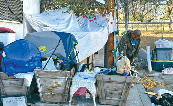 Korean-American tradespeople in the neighborhood complained about homeless encampments on the south side of Seoul International Park, at the intersection of Olympic Boulevard and Irolo Street, causing serious safety and sanitation issues. The area is bordered on two sides by Chungkiwa Plaza and the former Kim Banga building, and on the north by the park’s wire fence, making it a secluded spot where many crimes are committed because it is not easily visible, according to the tradespeople.