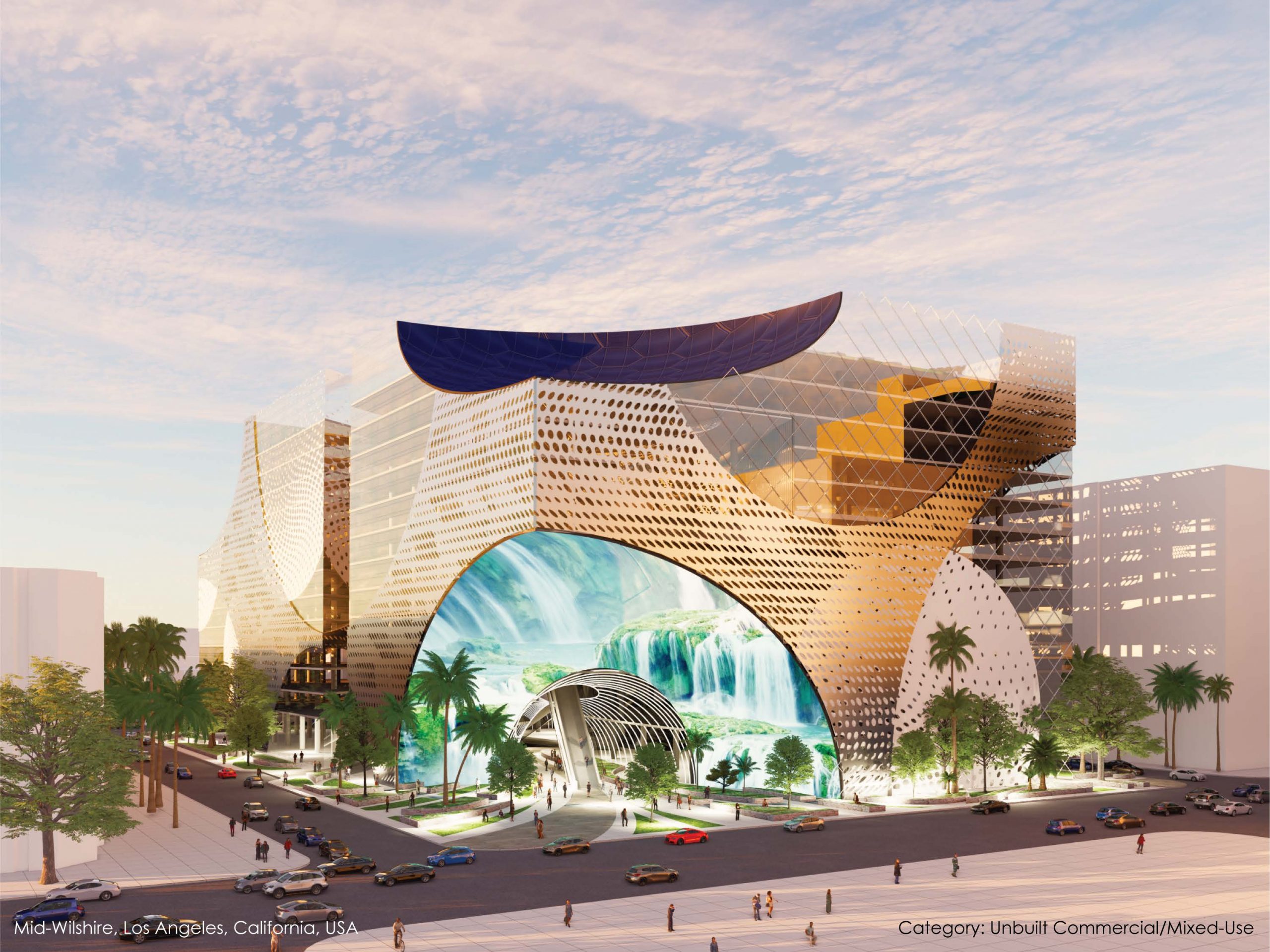 The design features three future-oriented buildings, including a redevelopment plan for the Consulate General of South Korea in LA, as well as proposals for the BCD Tofu House site and the Wilshire Lawn Plaza.