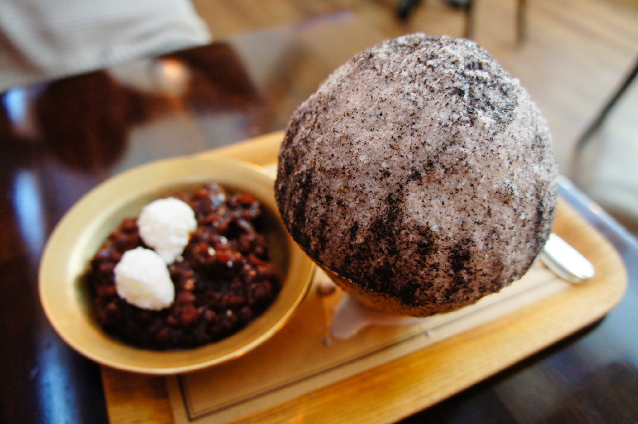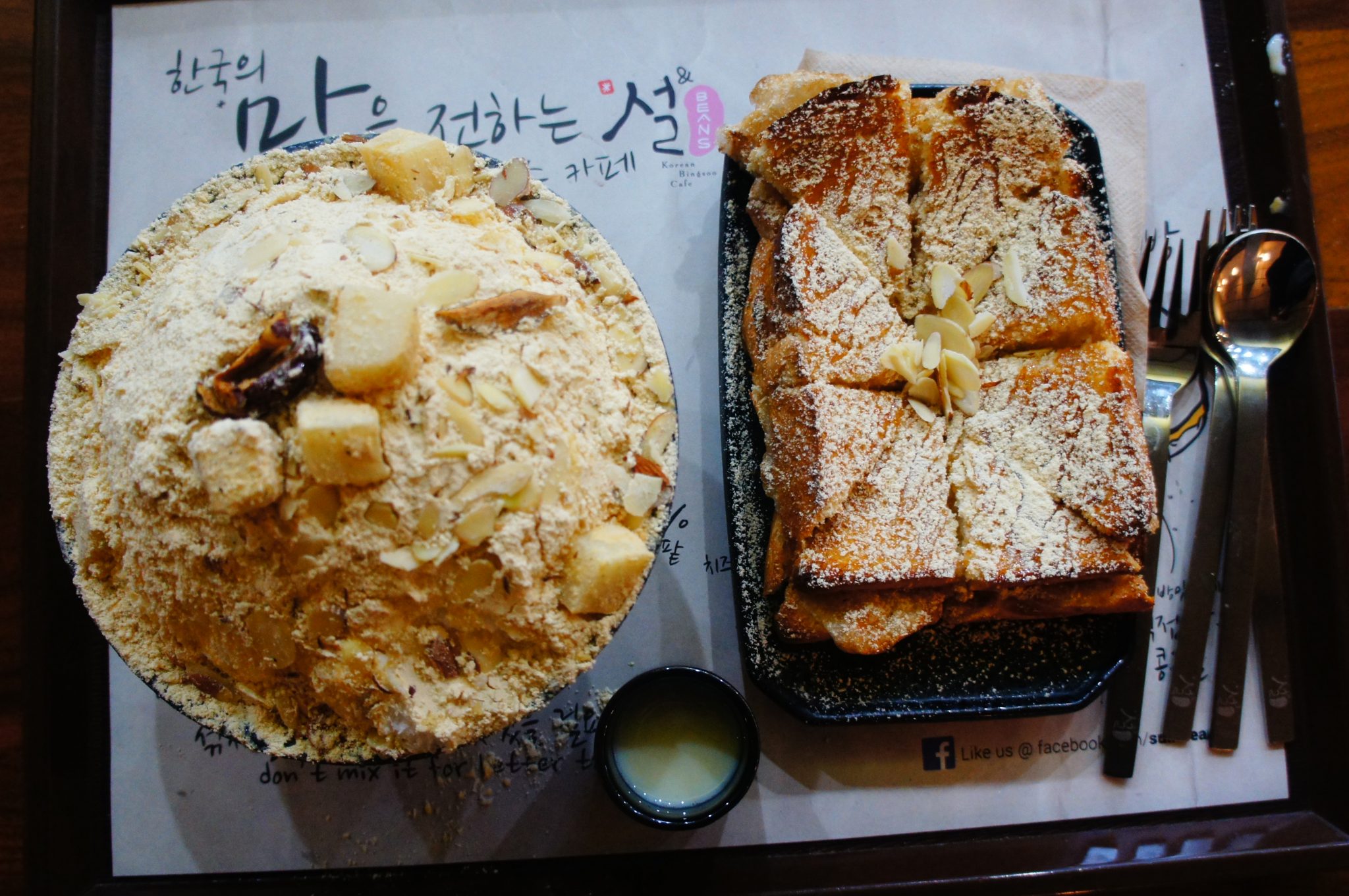 Bingsoo (ice flakes) and toasts with Injulmi. You can literally feel the special rich flavor of injulmi and its stickiness.