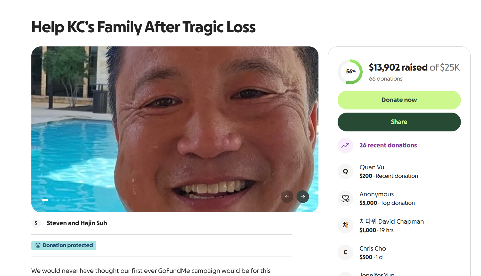 The family recently created a GoFundMe page titled “Help KC’s Family After Tragic Loss.” The funds will support Lee’s wife and their two children, ages 12 and 3.