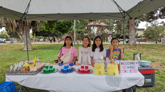 Mabel Park, Rhona Park, Kimie Wagle, and Noelle Ko who sold homemade lemonade, cookies, and toys to raise money for the victims of the Maui wildfires.