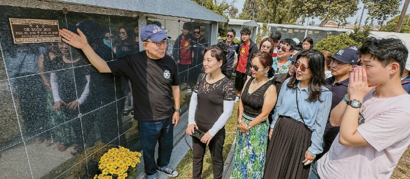 North Korean defectors visiting a charnel house in LA Koreatown on July 12 [Sangjin Kim, The Korea Daily]
