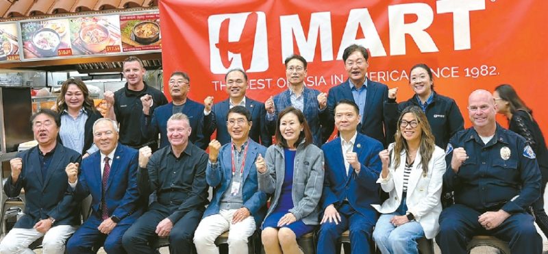 H Mart hosted a community safety and development meeting at the H Mart Garden Grove store on June 7 with H Mart CEO Il Yeon Kwon, 45th Congressional District Representative Michelle Park Steel, Garden Grove Mayor Steve Jones, Garden Grove Police Captain Brian Dalton, and other officials and residents.
