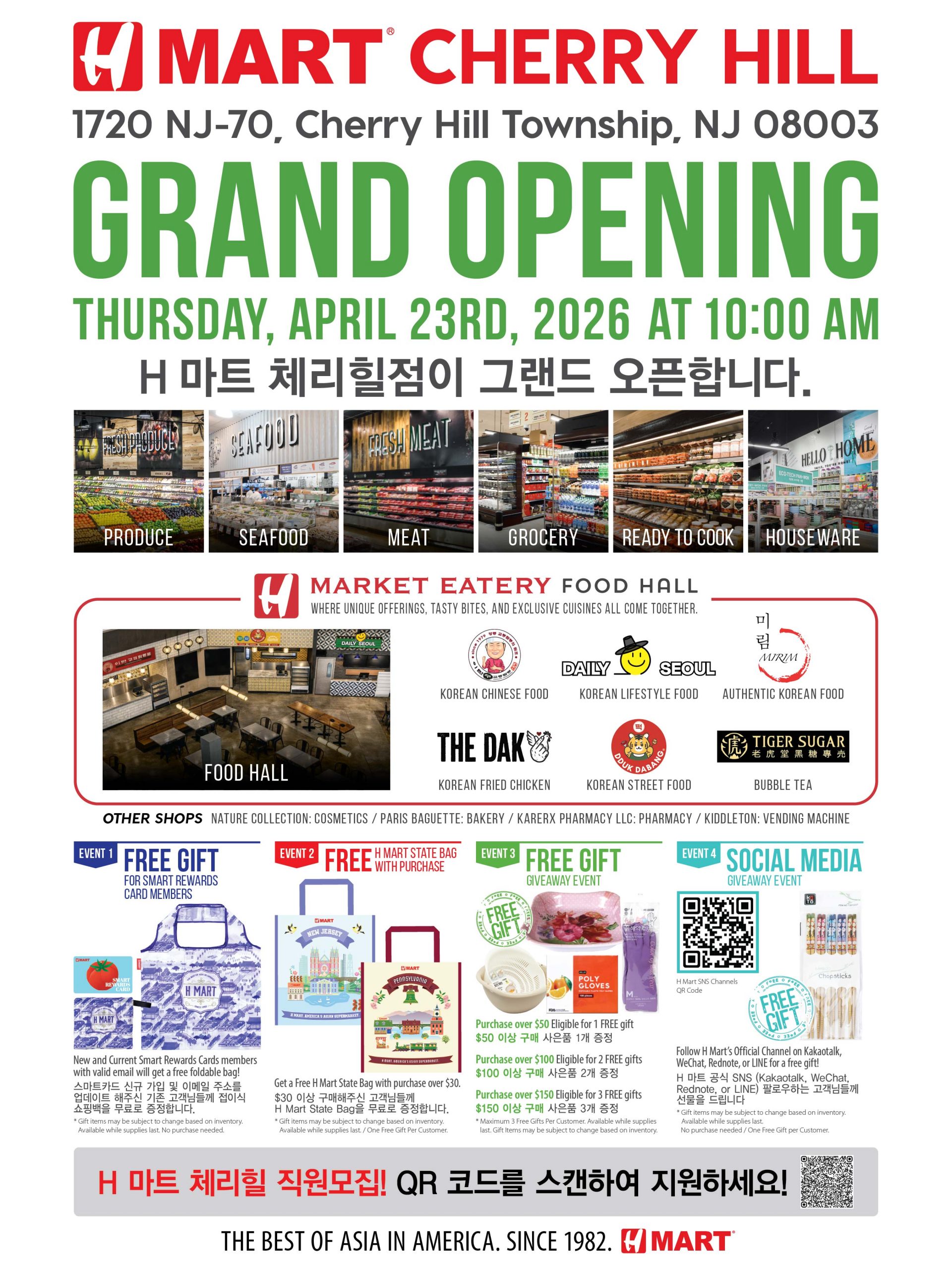 “We are thrilled to bring the authentic flavors and culture of Asia back to the Cherry Hill community,” said Brian Kwon, President of H Mart. “Our goal is to make it easier than ever for our customers to enjoy gourmet Asian cuisine right in their own kitchens.”