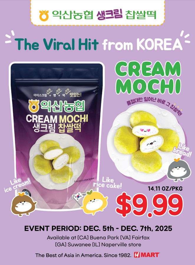 H Mart cream rice cake will headline a special pop-up event at the H Mart Buena Park store from the 5th to the 7th, offering limited sales of a Korean dessert that generated a sellout frenzy in Korea.