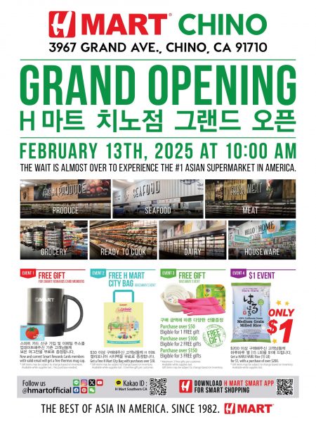 Brian Kwon, President of H Mart, commented, “Our goal is to enrich people’s lives through the traditions, food, and culture of Asia. We aim to make the Chino store not just a shopping space, but a ‘one-stop shopping’ destination that provides enjoyment and value to our customers.”