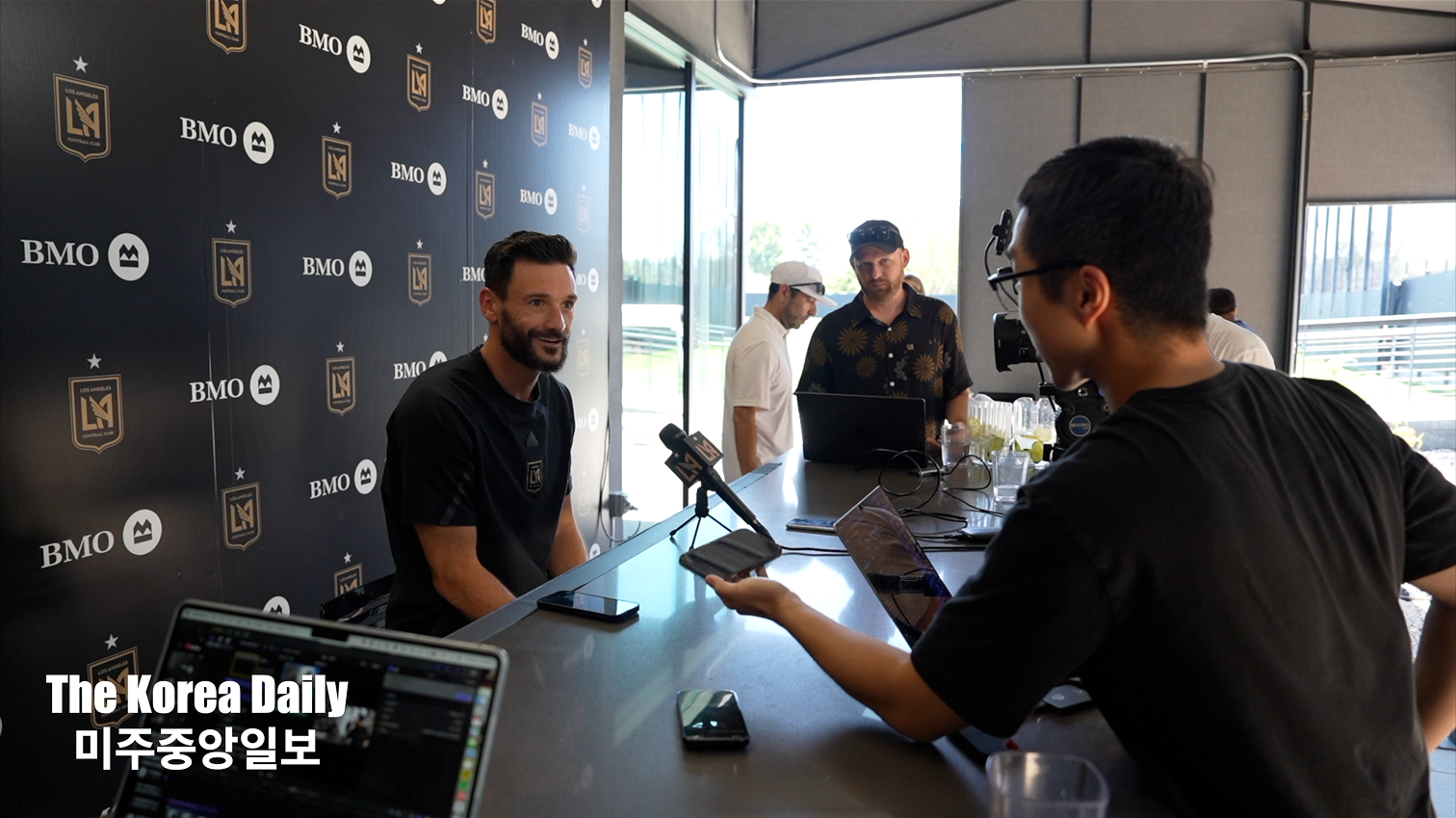 Kim interviews LAFC goalkeeper Hugo Lloris ahead of Son Heung-min’s debut at BMO Stadium. The Korea Daily/Yoonjae Jung