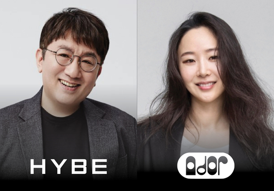 HYBE’s Bang Si-hyuk, left, and ADOR CEO Min Hee-jin [HYBE, ADOR]
