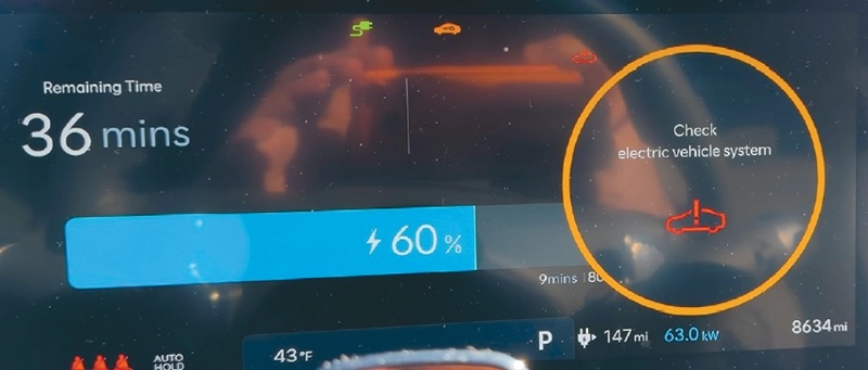 An Ioniq 5 displays an error believed to be related to an ICCU issue while charging. [YouTube screenshot]