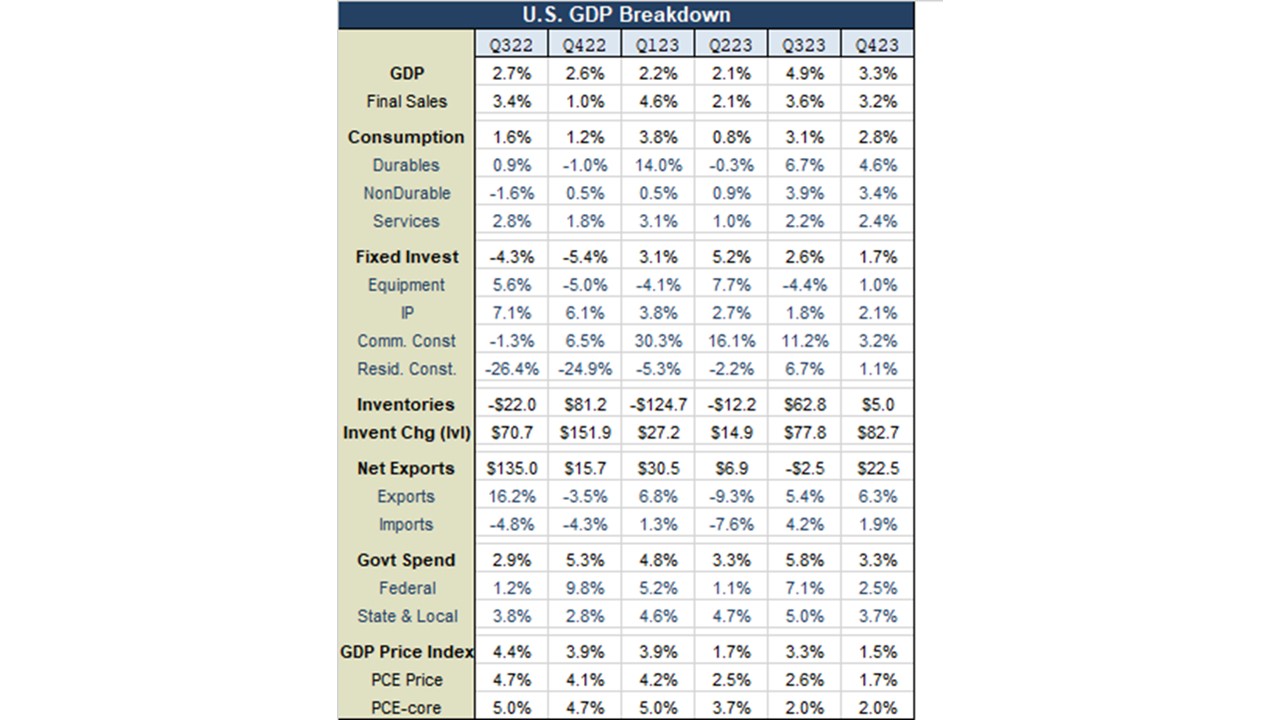 The economic growth during the fourth quarter of 2023 expanded at a slower, but impressive annual rate of 3.3 percent, surpassing expectations. Initially, both stock and bond markets reacted positively to the news. This robust growth was fueled by strong consumer spending, including the holiday season. A solid job market underpinned this growth, and the diminishing impact of inflation enhanced consumers’ buying power.
