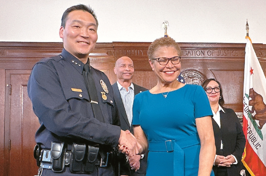 (Mayor Bass) “First, the Police Board of Commissions makes a list of candidates and discusses them together. The big question was who would be the leader to make the city safe, and Chief Choi was at the top of the list. Not because he’s Korean or Asian, but because of his 28 years of outstanding service.”