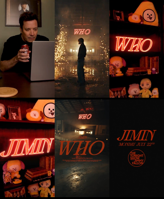 Captured images from a teaser video of Jimin’s upcoming performance on ″The Tonight Show Starring Jimmy Fallon.″ [BIGHIT MUSIC]