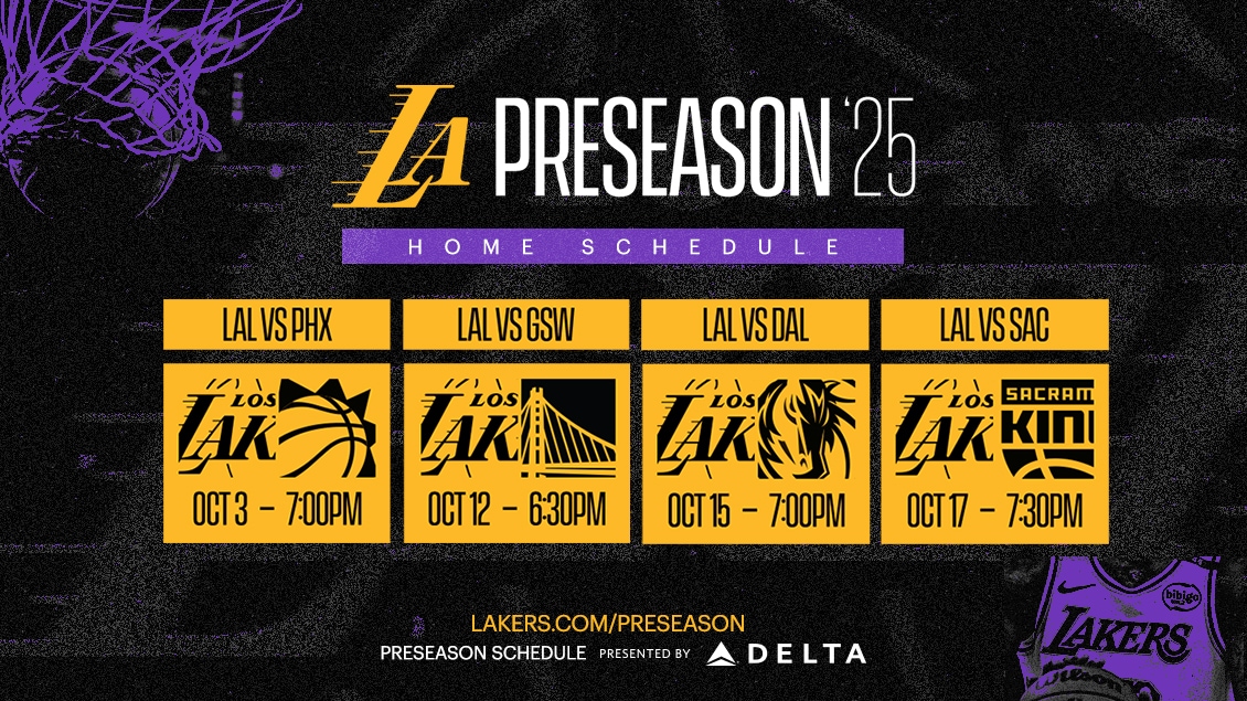 Lakers’ 2025 preseason schedule features matchups in Palm Springs, Los Angeles, and Las Vegas. Courtesy of Los Angeles Lakers