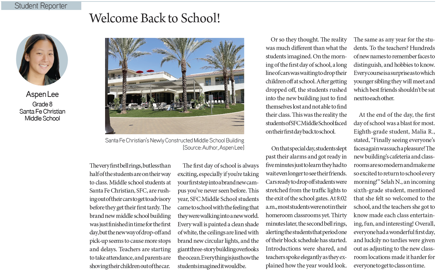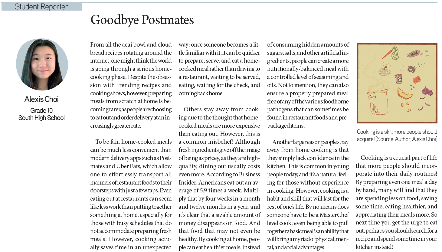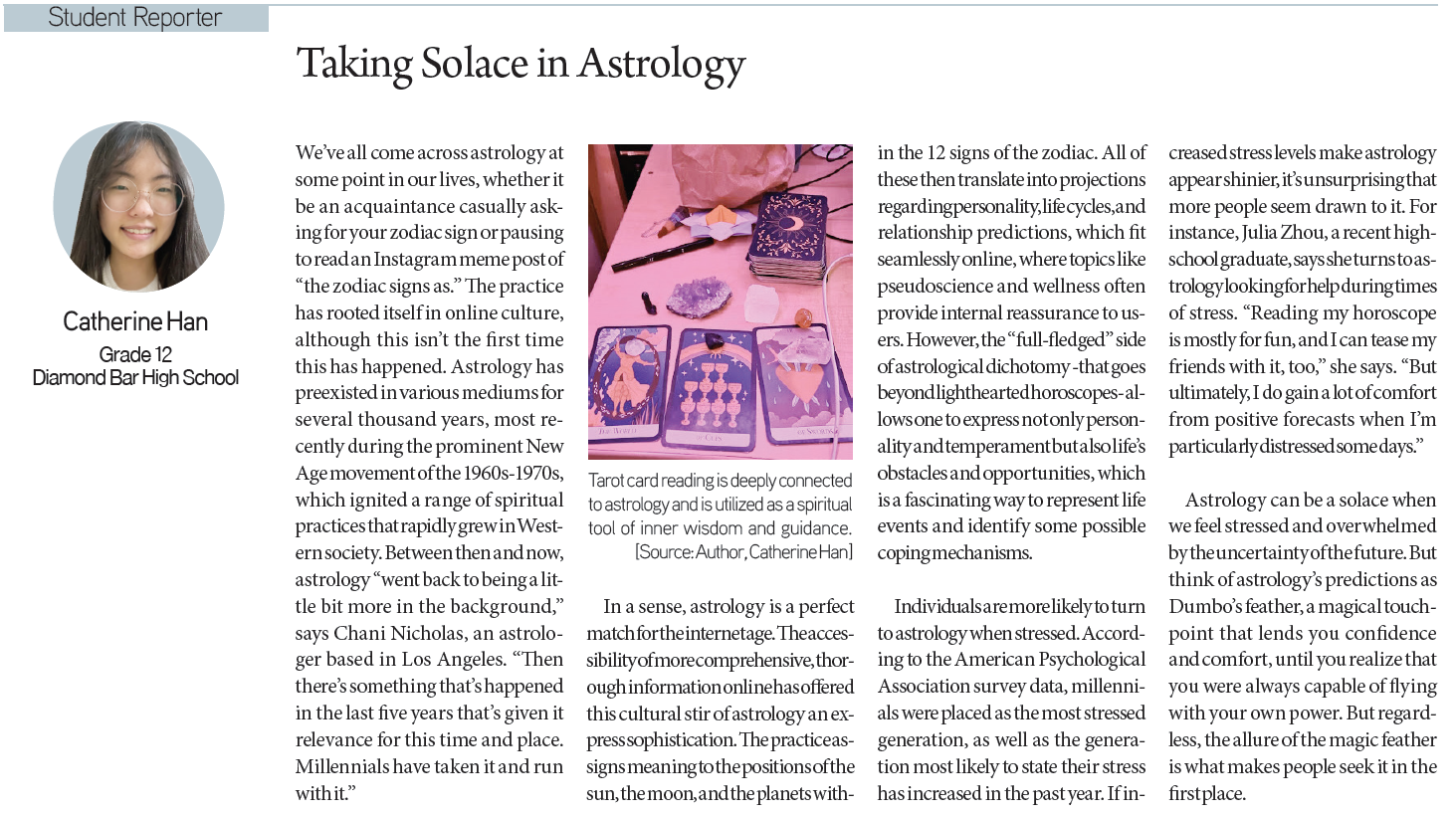 Minjae Kim / Grade 10 / Burbank High SchoolCatherine Han / Grade 12 / Diamond Bar High SchoolAlexis Choi / Grade 10 /South High SchoolAspen Lee / Grade 8 / Santa Fe Christian Middle SchoolAudrey Park / Grade 9 / Northwood High SchoolAngel Song / Grade 8 / Walter Reed Middle School
