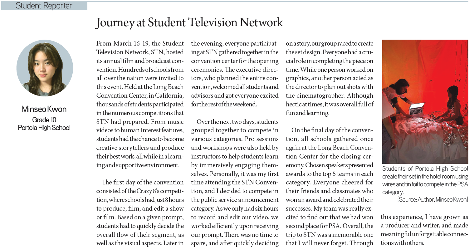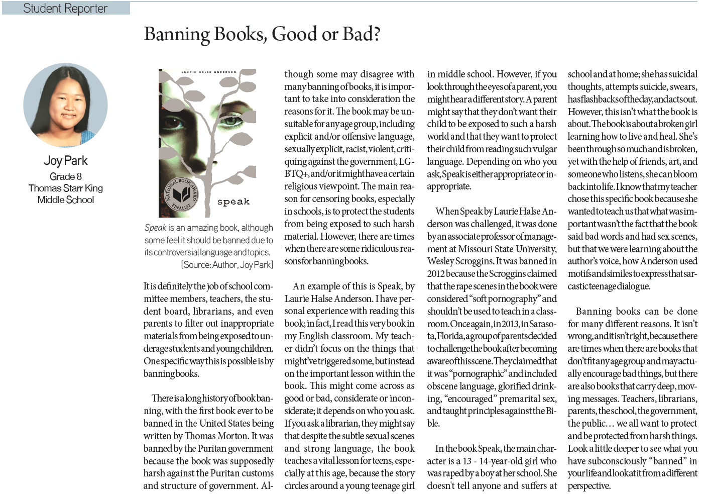 [KD Student Reporters] Banning Books, Good or Bad? (by Joy Park) By Korea Daily Digital May 3, 2023 1:44 PM PDT Newspaper PDF Download #Zoom in on the article image on click Jeremiah Chun / Grade 11 / West Ranch High School Sungeun Yoon / Grade 9 / Saigon South International School Minseo Kwon / Grade 10 / Portola High School Joy Park / Grade 8 / Thomas Starr King Middle School Seoyoon Kim / Grade 7 / South Lake Middle School Angel Song / Grade 8 / Walter Reed Middle School Share FacebookXPinterestWhatsApp White House Shooting Suspect Identified as Caltech Graduate Apr 27, 2026 6:00 PM PDT British Highschoolers try Korean Snacks for the first time! Apr 27, 2026 5:20 PM PDT The Must-Watch of 2026 COMING SOON: Colony (군체) Apr 27, 2026 5:18 PM PDT New Viral Coffee Shop in Koreatown LA! Apr 27, 2026 5:06 PM PDT Load more