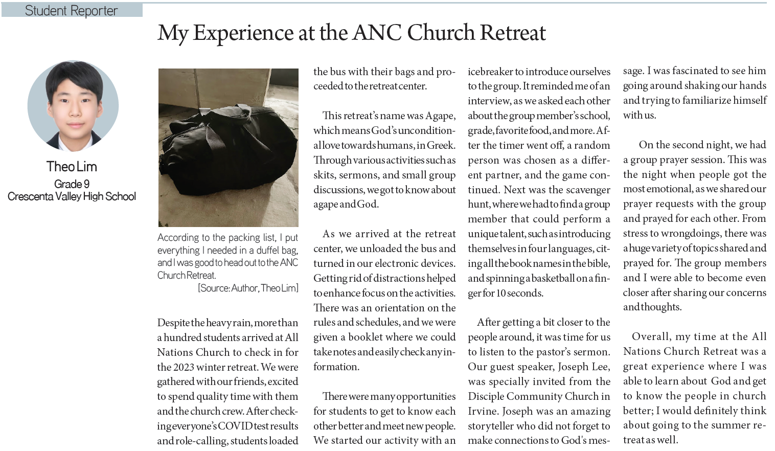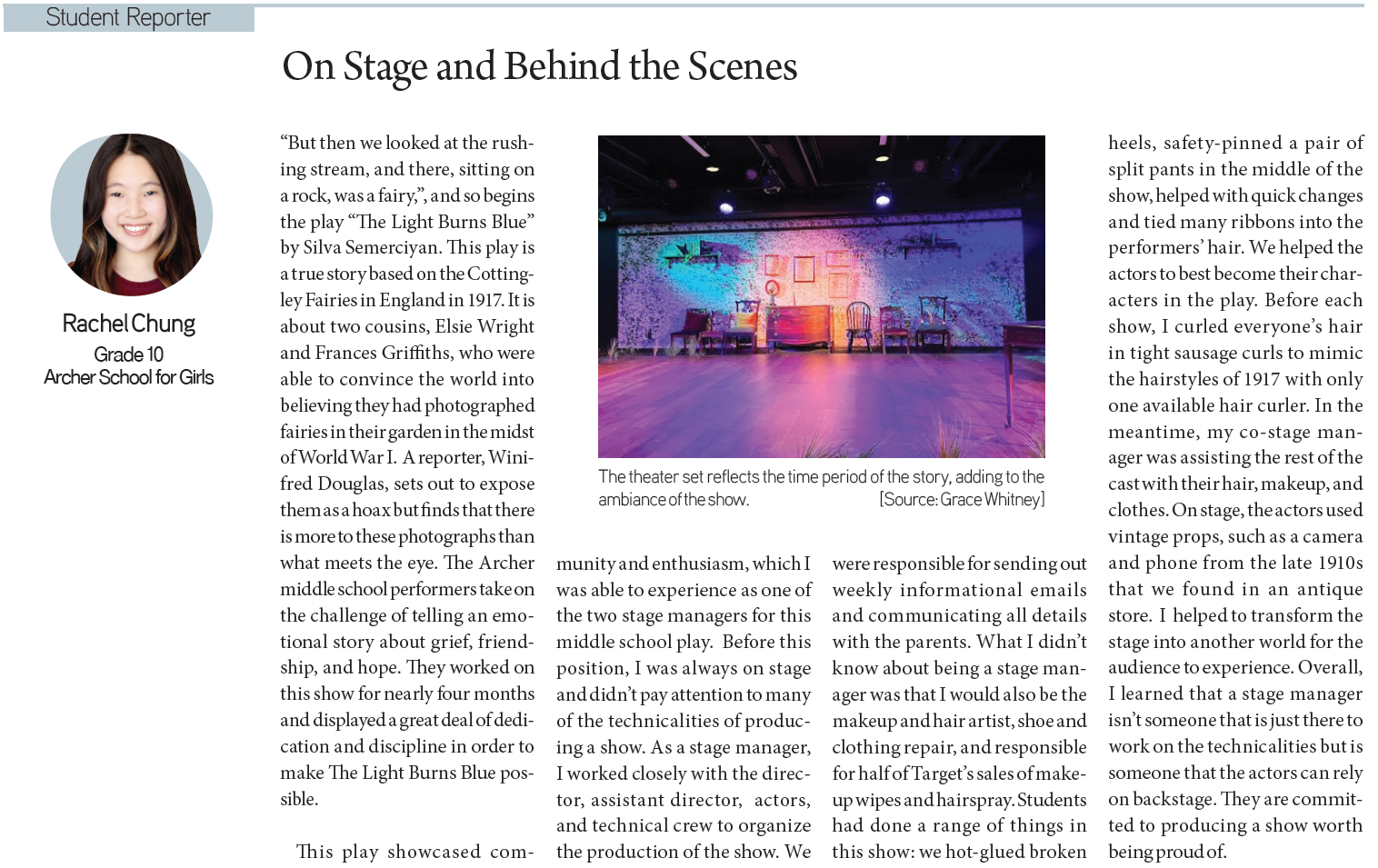 [KD Student Reporters] On Stage and Behind the Scenes (by Rachel Chung) By Korea Daily Digital Feb 1, 2023 11:50 AM PST Newspaper PDF Download #Zoom in on the article image on click Theo Lim / Grade 9 / Crescenta Valley High School Rachel Chung / Grade 10 / Archer School for Girls Sarah Kim / Grade 7 / Marlborough School Alexis Choi / Grade 10 / South High School Ethan Chang / Grade 11 / Stockdale High School Sean Kim / Grade 11 / Los Alamitos High School Share FacebookXPinterestWhatsApp Inside Hyundai’s Dust-Free, Low-Noise Smart Factory: The EV Production Hub Powering... Apr 27, 2026 2:18 PM PDT Tacoma convenience store shooting leaves two seriously injured Apr 27, 2026 10:30 AM PDT Copenhagen Secret? NewJeans comeback 2026 Rumors Confirmed! Apr 27, 2026 9:36 AM PDT Is Your Soul for Sale? Why Gold Land Disney+ is 2026’s... Apr 27, 2026 9:33 AM PDT Load more