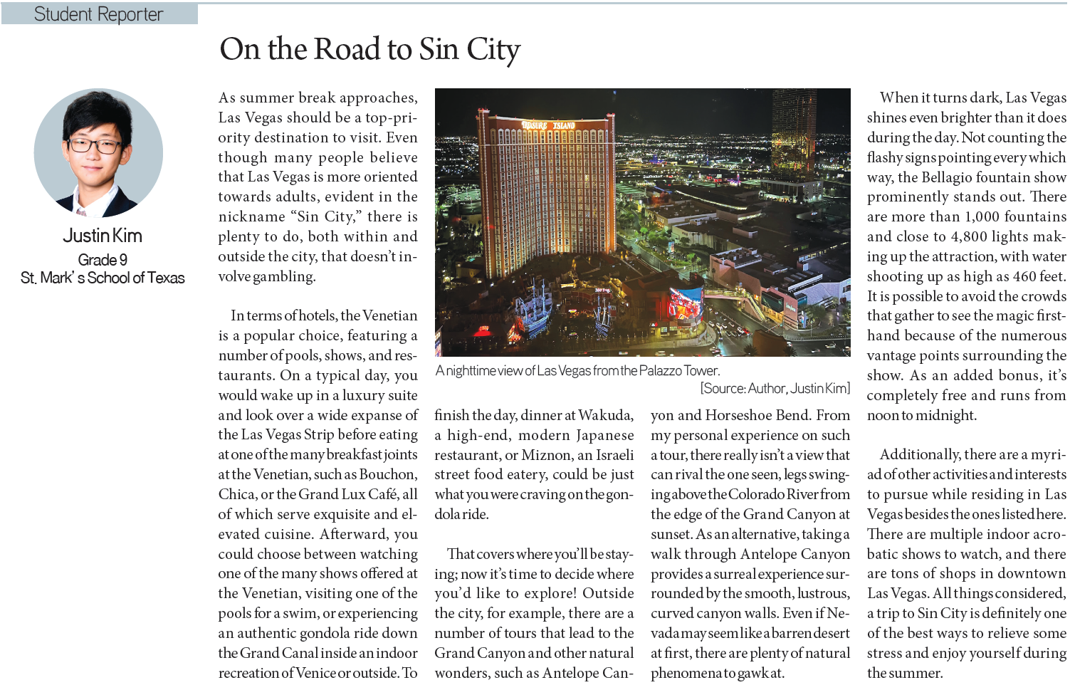 [KD Student Reporters] On the Road to Sin City (by Justin Kim) By Korea Daily Digital Jun 14, 2023 11:51 AM PDT Newspaper PDF Download #Zoom in on the article image on click Joshua Kim / Grade 11 / Ed W. Clark High School Jeremiah Chun / Grade 11 / West Ranch High School Caleb Lee / Grade 11 / St. Francis High School Justin Kim / Grade 9 / St. Mark’s School of Texas Annette Je / Grade 11 / Redondo Union High School Rubie Choi / Grade 11 / Torrance High School Share FacebookXPinterestWhatsApp Copenhagen Secret? NewJeans comeback 2026 Rumors Confirmed! Apr 27, 2026 9:36 AM PDT Is Your Soul for Sale? Why Gold Land Disney+ is 2026’s... Apr 27, 2026 9:33 AM PDT Slurpees at a Wedding? 7-Eleven Catering Officially Launches! Apr 27, 2026 9:24 AM PDT Sub-2 Hour Miracle: What Shoes Was Sebastian Sawe Wearing? Apr 27, 2026 9:20 AM PDT Load more