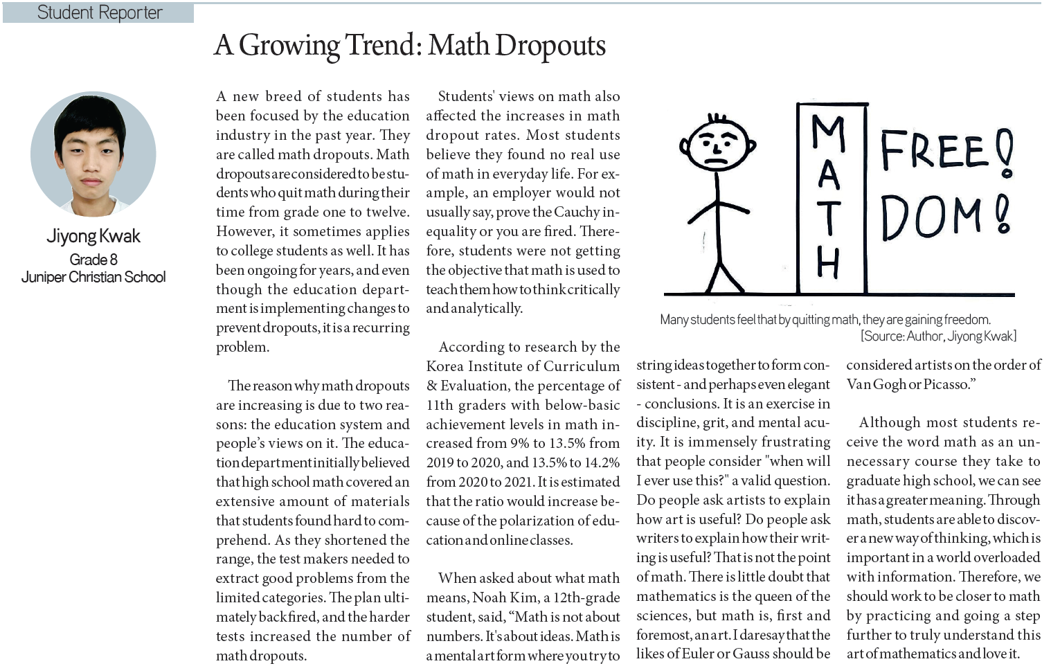 Jiyong Kwak / Grade 8 / Juniper Christian School