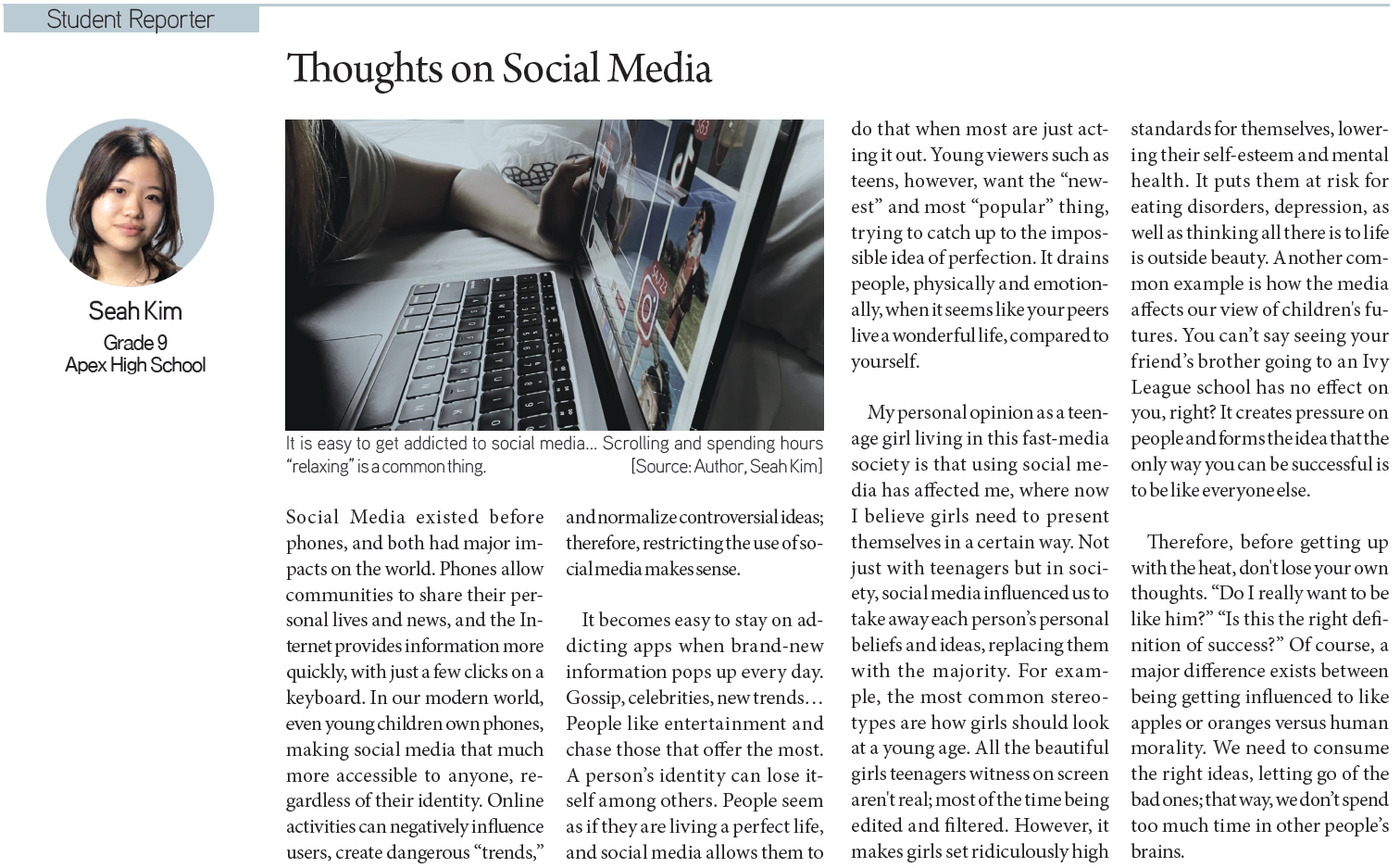 [KD Student Reporters] Thoughts on Social Media (by Seah Kim)