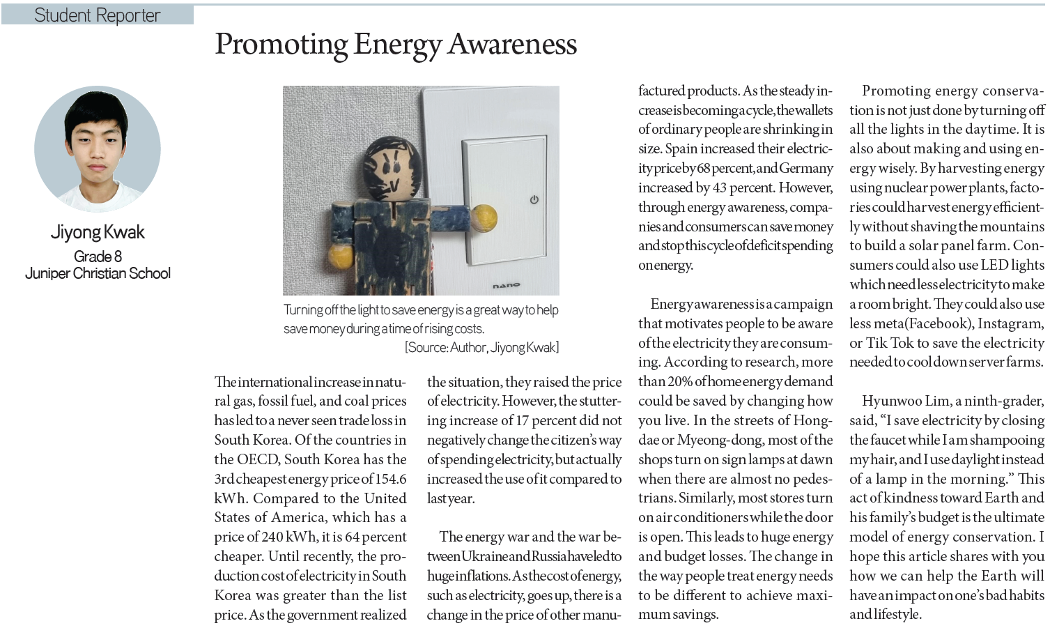Jiyong Kwak / Grade 8 / Juniper Christian School