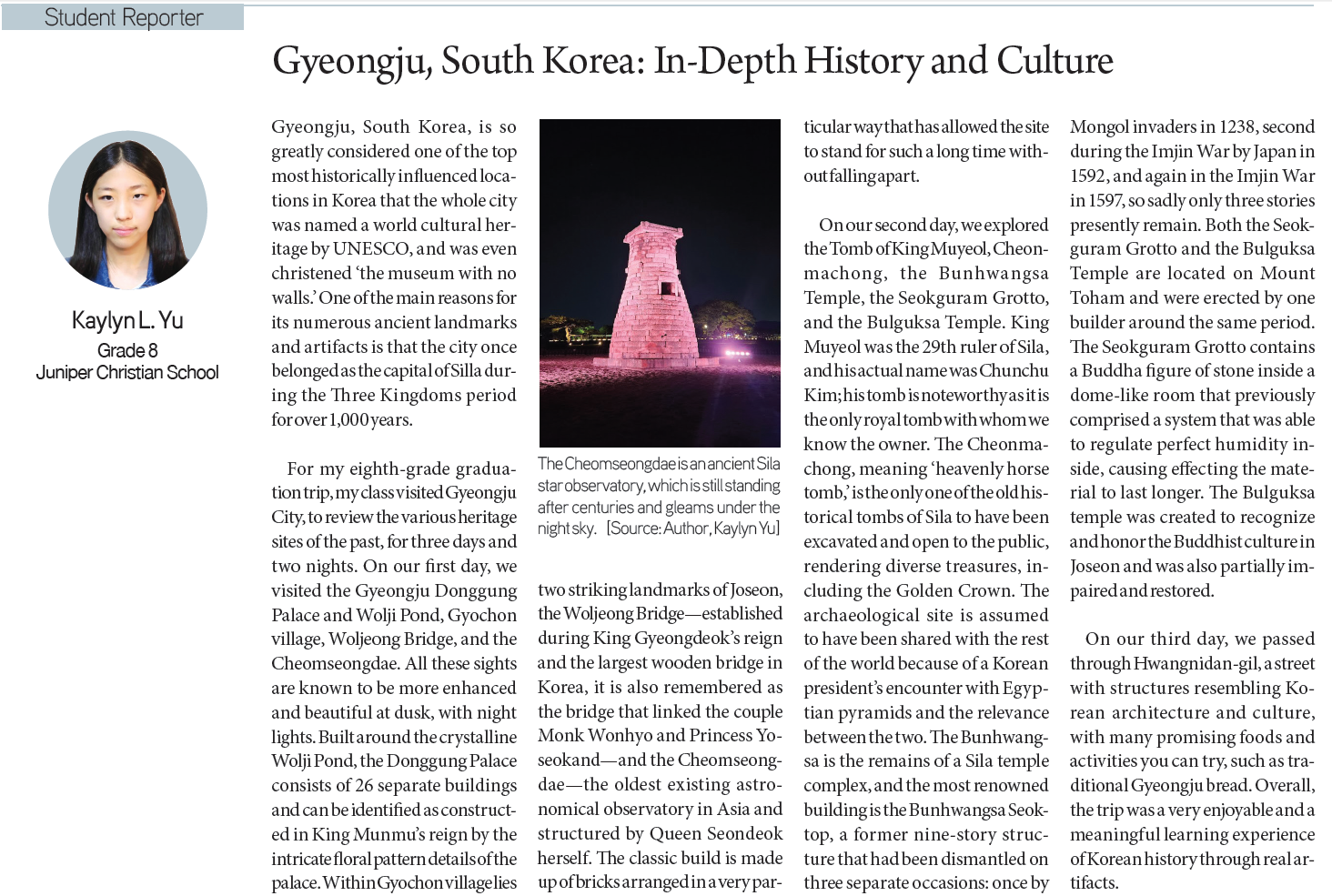 Kaylyn L. Yu / Grade 8 / Juniper Christian School