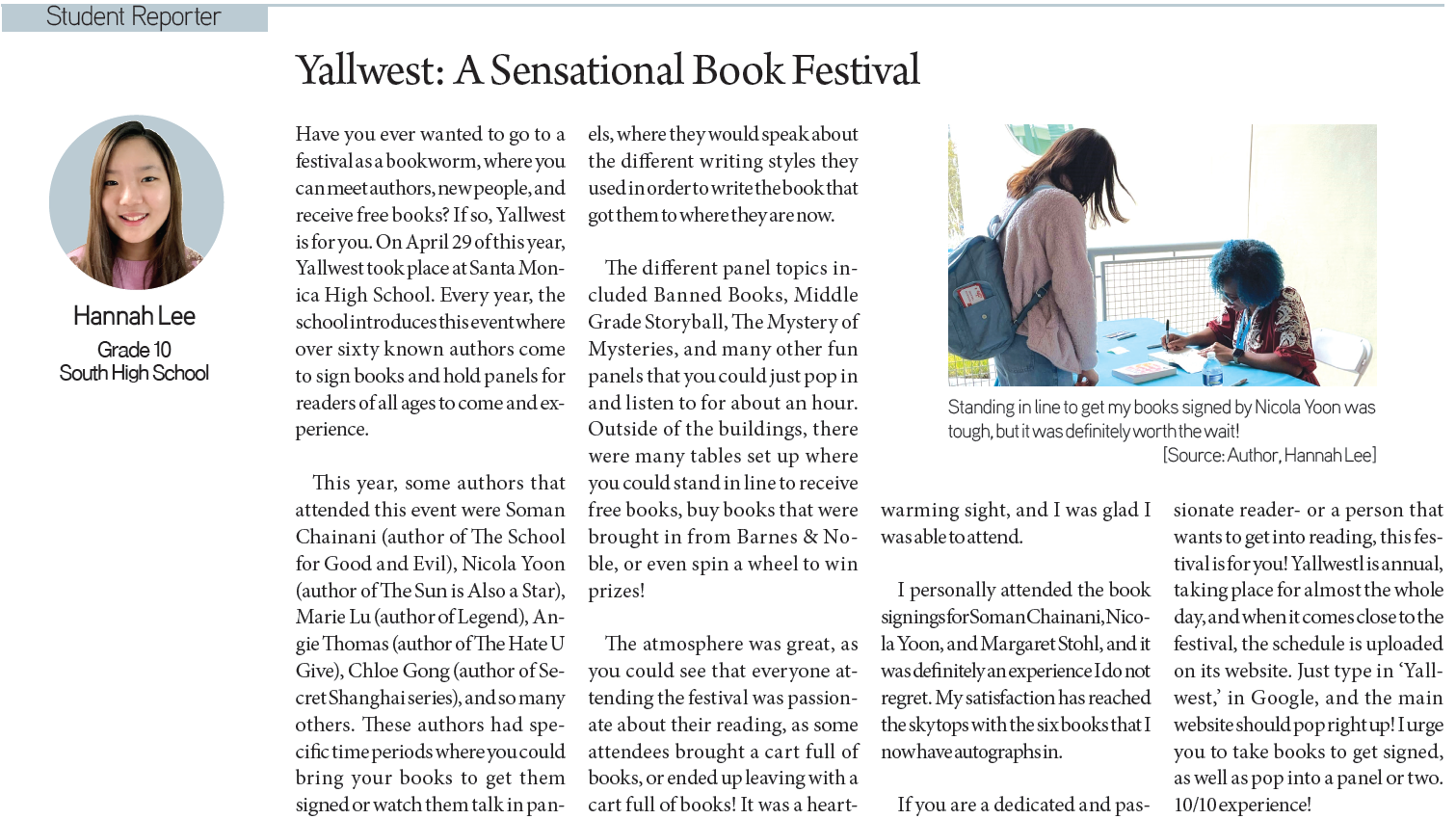 Hannah Lee / Grade 10 / South High School