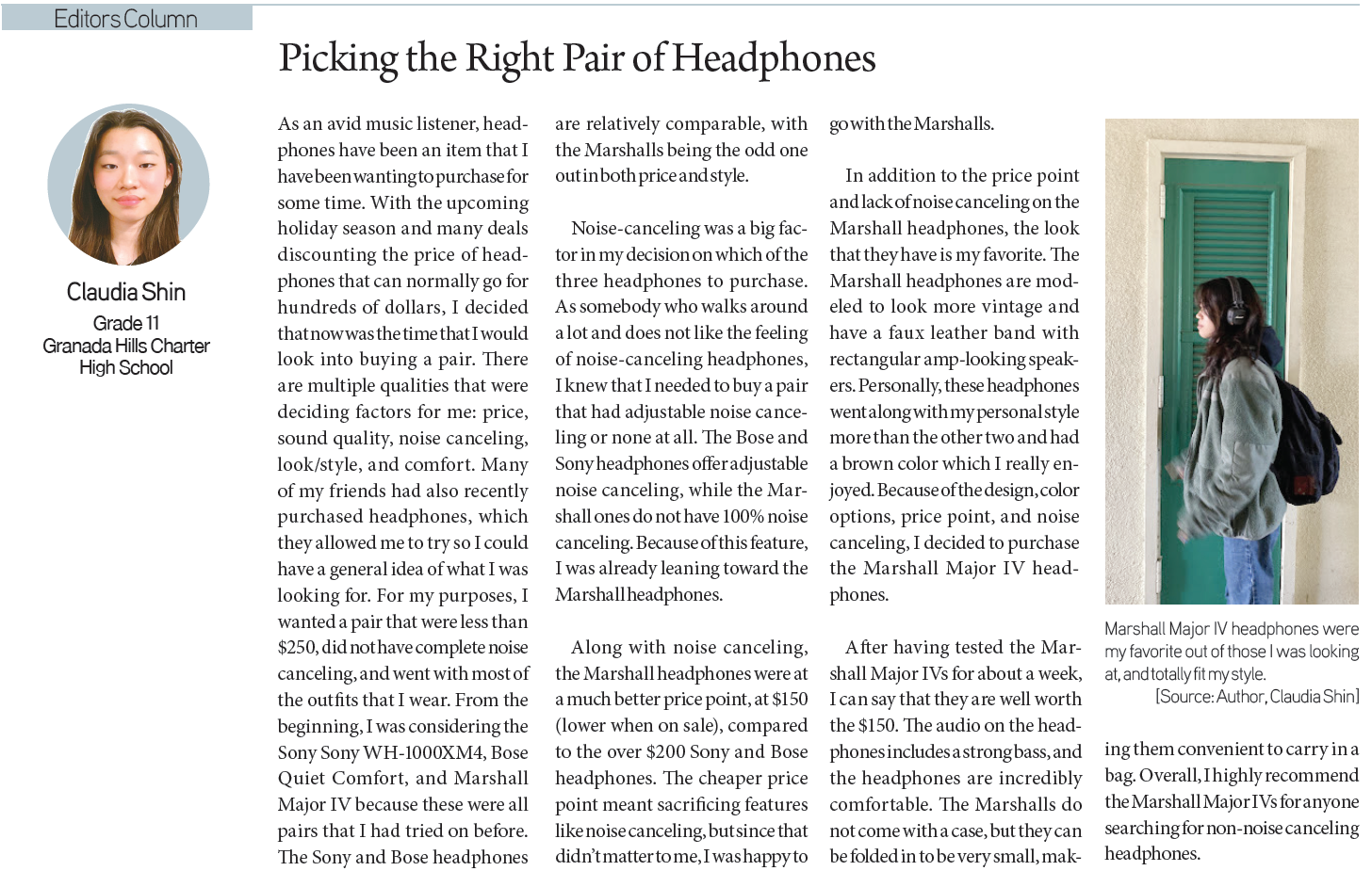 Claudia Shin / Grade 11 / Granada Hills Charter High School