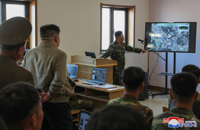 The review came to light through images released by the Korean Central News Agency (KCNA) on September 13. One of the photos shows a North Korean military officer pointing to a satellite image of the command on a screen, while Kim Jong-un, standing with his hands behind his back, listens intently.