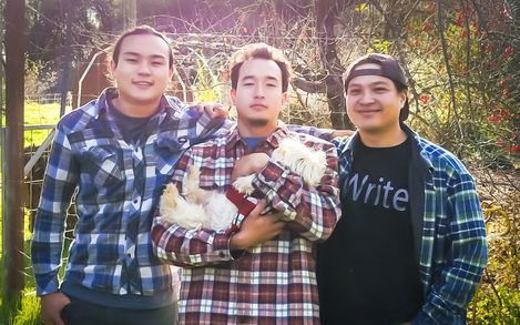 Three Korean American brothers – Aaron, Michael, and Joseph Choi (from left) – are gaining attention for their efforts in herding goats to prevent wildfires. [Courtesy of Fire Grazers website]