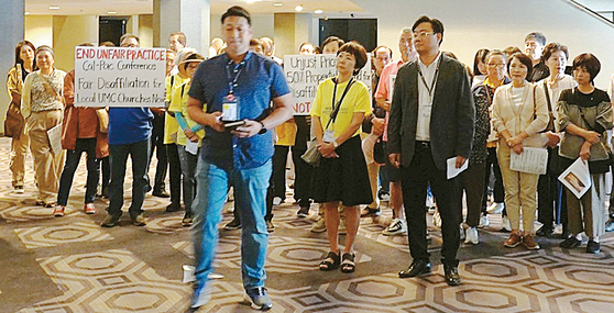 On June 17, over 100 Korean-American Methodists protested at a UMC California Pacific Conference meeting in the Los Angeles area, demanding that the denomination rescind its decision. Members of over 10 Korean-American Methodist churches, including Bell Memorial United Methodist Church, Van Nuys United Methodist Church, and Wilshire United Methodist Church, which are all part of the Korean United Methodist Church, joined the protest to condemn the denomination’s decision.