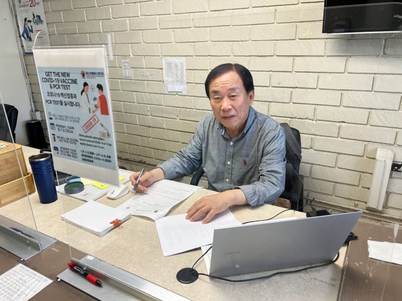 “I used to work for the government for a long time,” he said. “I’m very used to administrative work. What do I do after retiring and staying at home? I come out here and help people of Koreatown with English documents that they have trouble with. They seem to be happy to solve their problems, and that makes me feel good.”