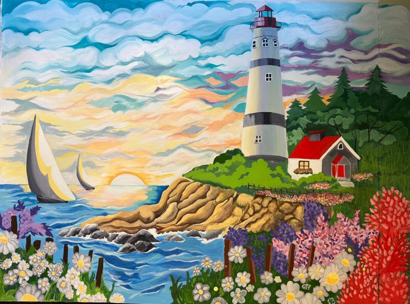 The exterior painting, “Hope,” follows “Lighthouse,” a mural painted on the first-floor hallway inside the Bell shelter, and the completion of the paintings was accompanied by Sinfonietta Orchestra students who provided musical inspiration and encouragement.