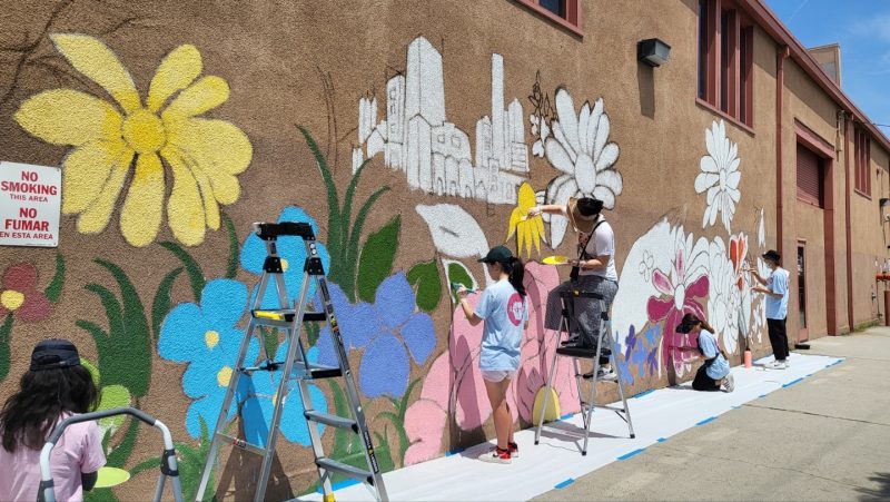 This is the students’ fourth mural. Two previously painted murals are at The Salvation Army LA Silvercrest Senior Housing in Koreatown, including the interior of the building and the exterior garden project.
