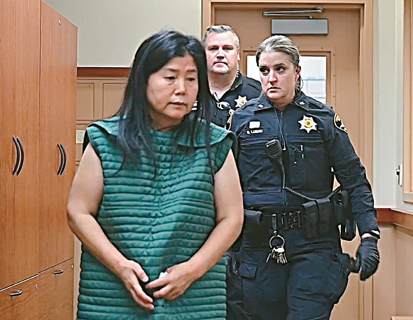 Youngmi Shin appears at Pierce County Court. [Image captured from The News Tribune]