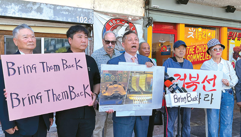 On August 22, the “Committee for the Restoration of the Geobukseon Exhibit,” led by Chairman Scott Suh, held a press conference to condemn LA Mayor Karen Bass for allocating $500,000 to move the exhibits and make space for promotional materials, including the installation of the Olympic flag.