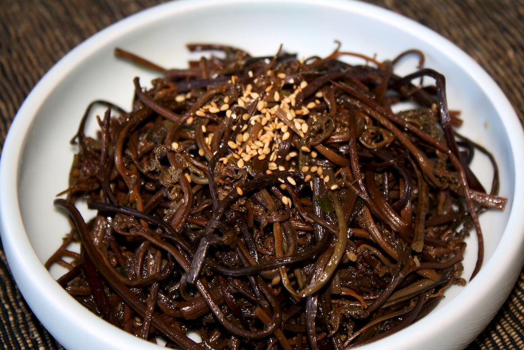 Gosari has a distinct earthly taste and is widely loved, because of its high nutritional content. It is prepared by sautéing with soy sauce, garlic, green onions, and sesame seeds.