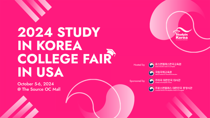 Study in Korea Support Center will hold its first event, the 2024 Study in Korea College Fair, from October 5-6 (11 a.m.-8 p.m.) at The Source OC in Buena Park. Kyung Hee University, Korea University, Daegu Catholic University, Ewha Womans University, Pohang University of Science and Technology, Korea University of Media Arts, and Hanyang University will set up booths at the event to attract international students. At the same time, 23 universities will provide admission information through an online fair (studyinkorea.go.kr/ko/expomain.do).