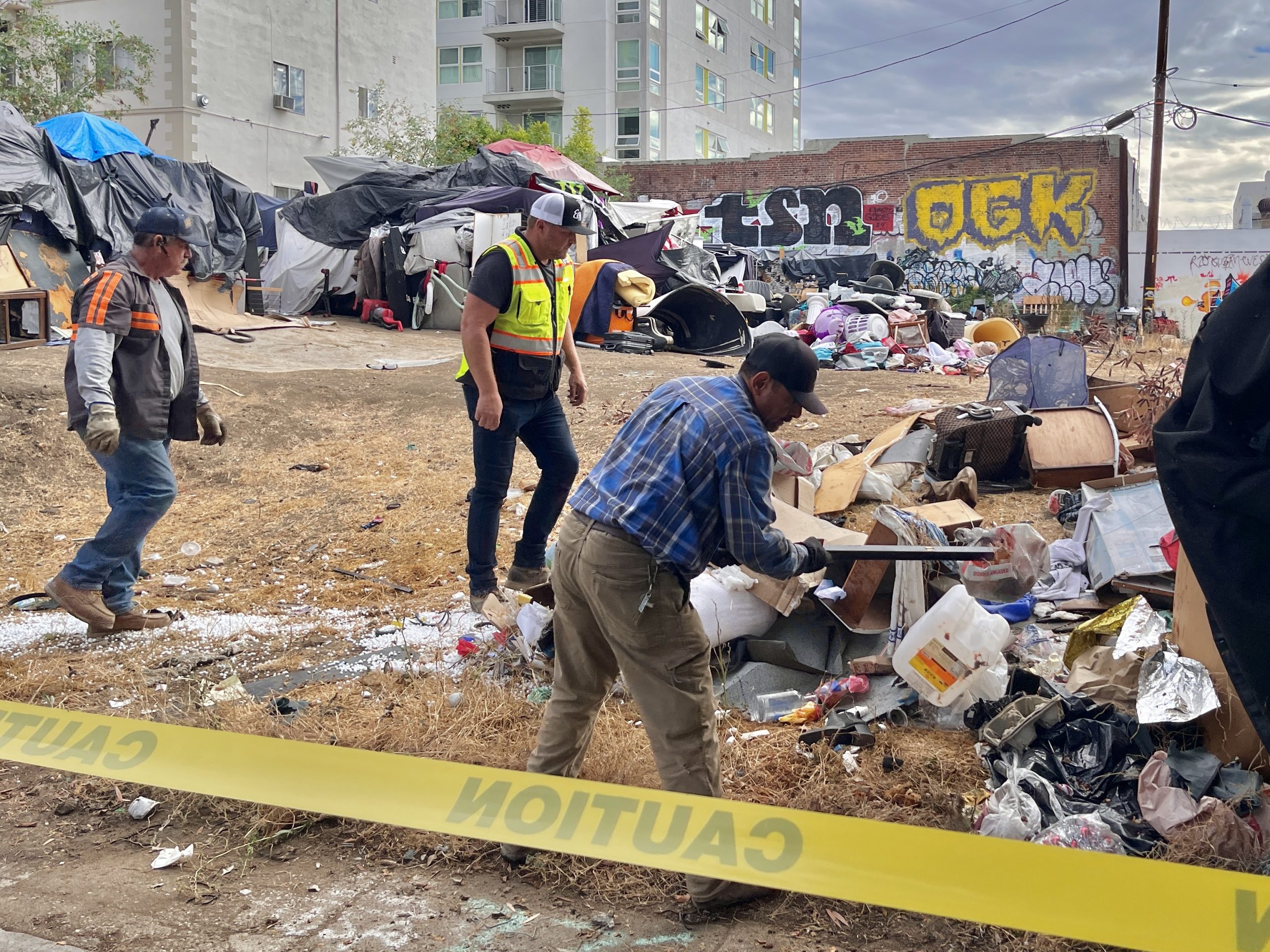 Cleanup crew hired by ELK Development clears Koreatown homeless encampment site after removal